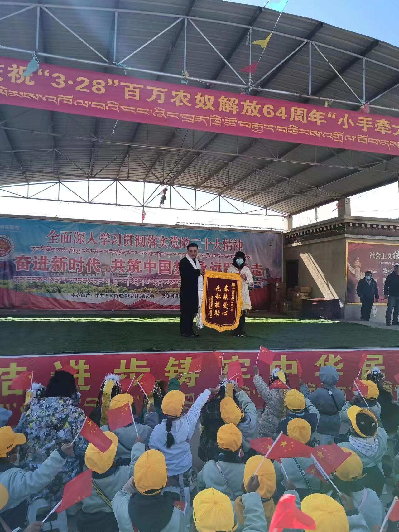 3月28日是西藏農奴解放64周年,在這個(gè)特殊的日子,華寶香精股份有限公司積極響應拉薩市經(jīng)濟技術(shù)開(kāi)發(fā)區管委會(huì )組織的西藏自治區“3.28”農奴解放64周年紀念日暨“下基層大接訪(fǎng)辦實(shí)事”活動(dòng)號召,向拉薩市堆龍區波瑪村捐款2萬(wàn)余元的生活物資,其中包括米面糧油一批、幼兒園園服103套、3-6歲兒童繪本200余本,進(jìn)一步提高村民的幸福指數。