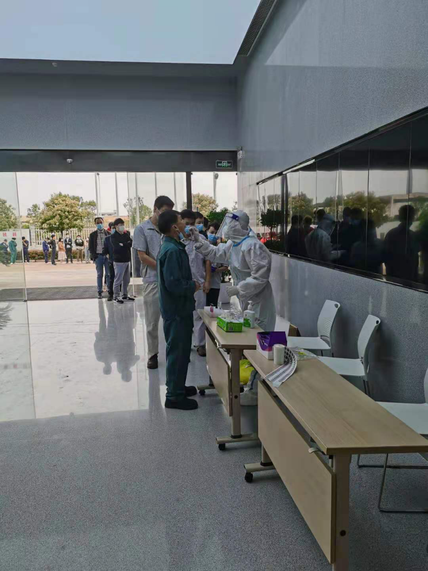 江西孔雀主動(dòng)與高新區管委會(huì )溝通,由高新區協(xié)調出白露衛生院上門(mén)服務(wù),在公司現場(chǎng)開(kāi)展新型冠狀病毒核酸檢測工作,為避免人員大規模聚集,公司提前做好部署和安排,由專(zhuān)人對檢測人員的信息登記、本人健康碼出示及現場(chǎng)秩序等進(jìn)行全程引導服務(wù),確保高效有序完成核酸檢測工作。公司全體員工及二期項目組人員共計120余人參加了此次核酸檢測,結果全部為陰性。
