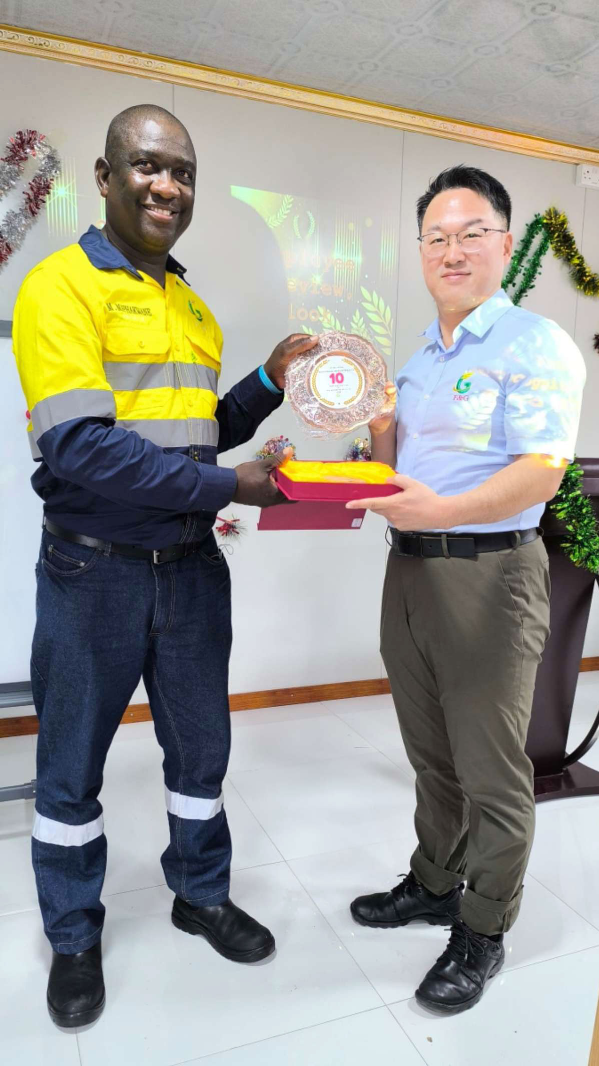 近日,非洲F&G在新近完工的會(huì )議室成功舉辦了年度總結、員工表彰暨2025年展望大會(huì )。全體員工身著(zhù)公司制服,齊聚一堂,共同見(jiàn)證了這一激動(dòng)人心的時(shí)刻。